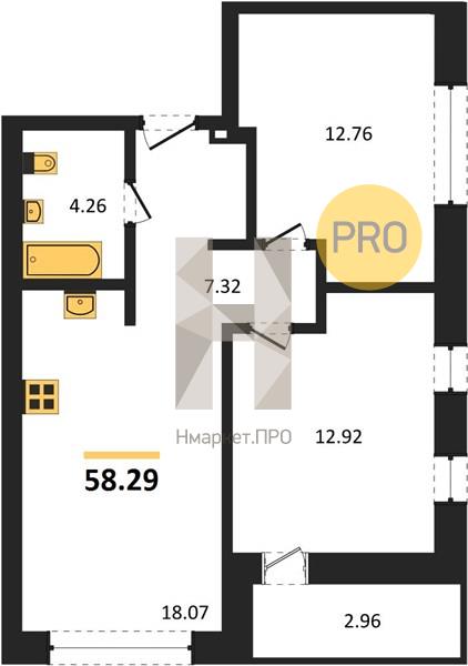 | Общая площадь: | 58.29 м2 |