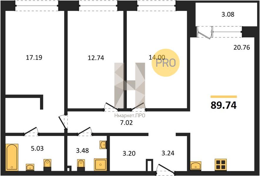 | Общая площадь: | 89.74 м2 |