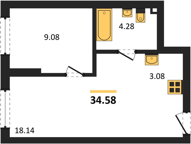 Квартира: 1 к 34,58 кв.м., 27 этаж в комплексе Московский квартал, 4 очередь, корп.11, сдача: 3кв. , этажей: 33, адрес Екатеринбург г., Печатников ул., д. 5, Застройщик: Московский квартал.