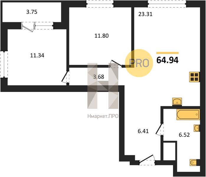 Квартира: 2 к 64,94 кв.м., 30 этаж в комплексе Московский квартал, 4 очередь, корп.11, сдача: 3кв. , этажей: 33, адрес Екатеринбург г., Печатников ул., д. 5, Застройщик: Московский квартал.