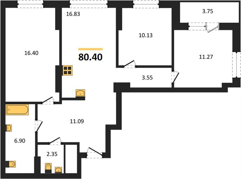 Квартира: 3 к 80,40 кв.м., 31 этаж в комплексе Московский квартал, 4 очередь, корп.11, сдача: 3кв. , этажей: 33, адрес Екатеринбург г., Печатников ул., д. 5, Застройщик: Московский квартал.