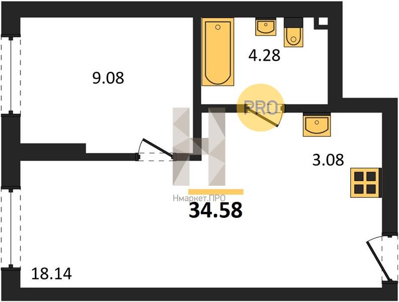 | Общая площадь: | 34.58 м2 |