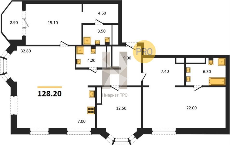 | Общая площадь: | 128.20 м2 |