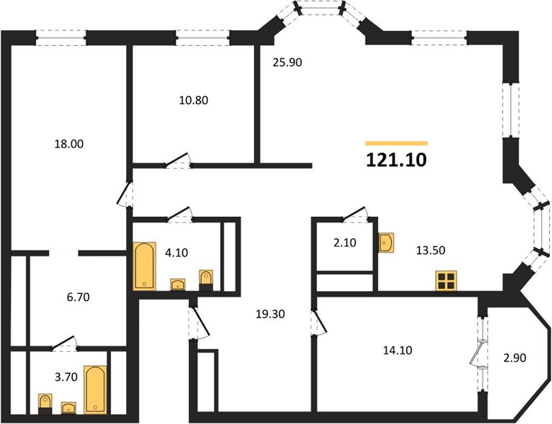 | Общая площадь: | 121.10 м2 |