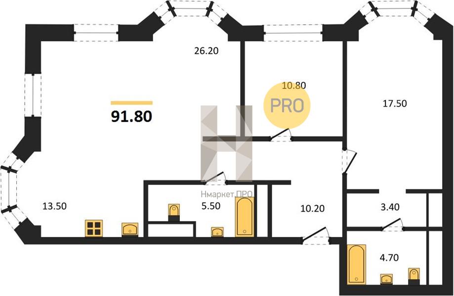 | Общая площадь: | 91.80 м2 |
