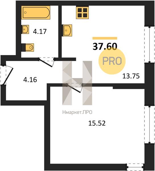 Квартира: 1 к 37,60 кв.м., 3 этаж в комплексе Rauta, 5 очередь, корп.6, сдача: 3кв. , этажей: 25, адрес Екатеринбург г., Пехотинцев ул., д. 2, корпус а, Застройщик: ГК ЭТАЛОН.