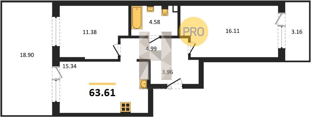 | Общая площадь: | 63.61 м2 |
