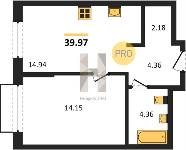 Квартира: 1 к 39,97 кв.м., 3 этаж в комплексе Rauta, 5 очередь, корп.6, сдача: 3кв. , этажей: 25, адрес Екатеринбург г., Пехотинцев ул., д. 2, корпус а, Застройщик: ГК ЭТАЛОН.