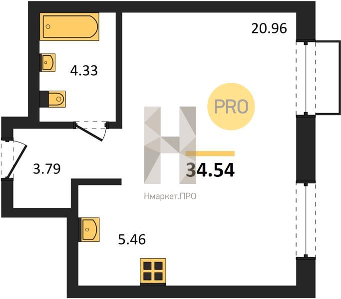Студия: 34,54 кв.м., 3 этаж в комплексе Rauta, 5 очередь, корп.6, сдача: 3кв. , этажей: 25, адрес Екатеринбург г., Пехотинцев ул., д. 2, корпус а, Застройщик: ГК ЭТАЛОН.