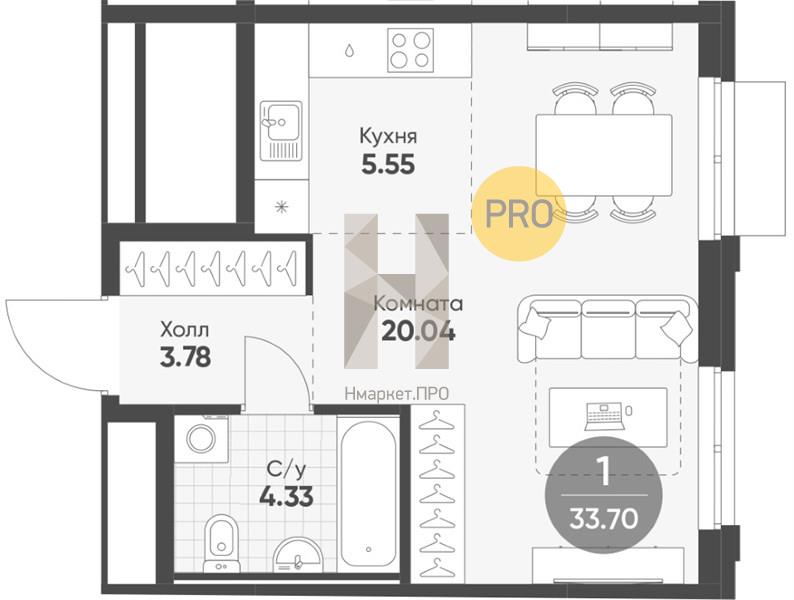 | Общая площадь: | 33.70 м2 |