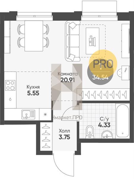 Студия: 34,54 кв.м., 4 этаж в комплексе Rauta, 5 очередь, корп.6, сдача: 3кв. , этажей: 25, адрес Екатеринбург г., Пехотинцев ул., д. 2, корпус а, Застройщик: ГК ЭТАЛОН.