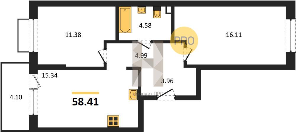 Квартира: 2 к 58,41 кв.м., 13 этаж в комплексе Rauta, 5 очередь, корп.6, сдача: 3кв. , этажей: 25, адрес Екатеринбург г., Пехотинцев ул., д. 2, корпус а, Застройщик: ГК ЭТАЛОН.