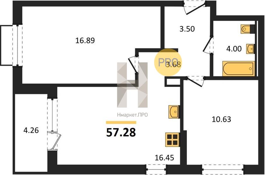 | Общая площадь: | 57.28 м2 |