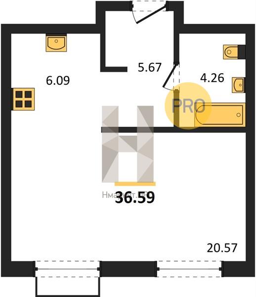 Купить студию, 36.59 м2 № 6974497
