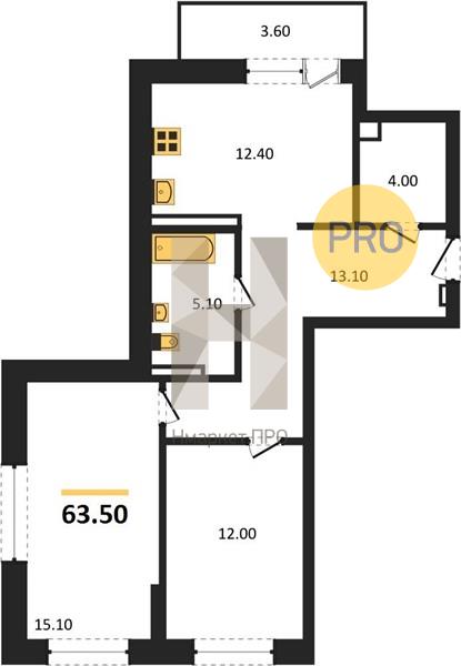 Квартира: 2 к 63,50 кв.м., 11 этаж в комплексе Estelle, 1 очередь, корп.1, сдача: 4кв. , этажей: 26, адрес Екатеринбург г., Пехотинцев ул., д. 2а-1, Застройщик: СЗ ИНВЕСТСТРОЙ.