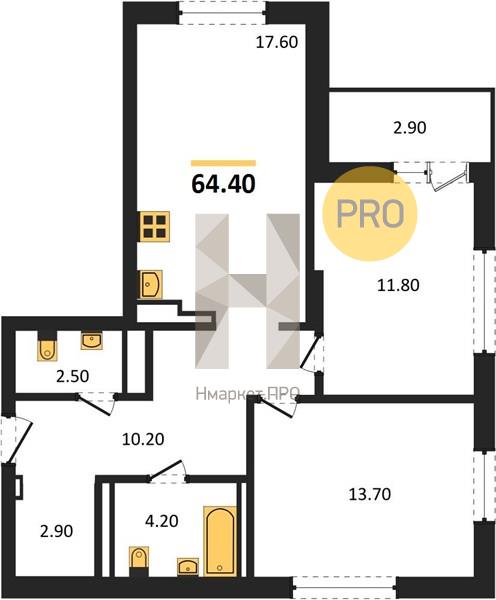 | Общая площадь: | 64.40 м2 |