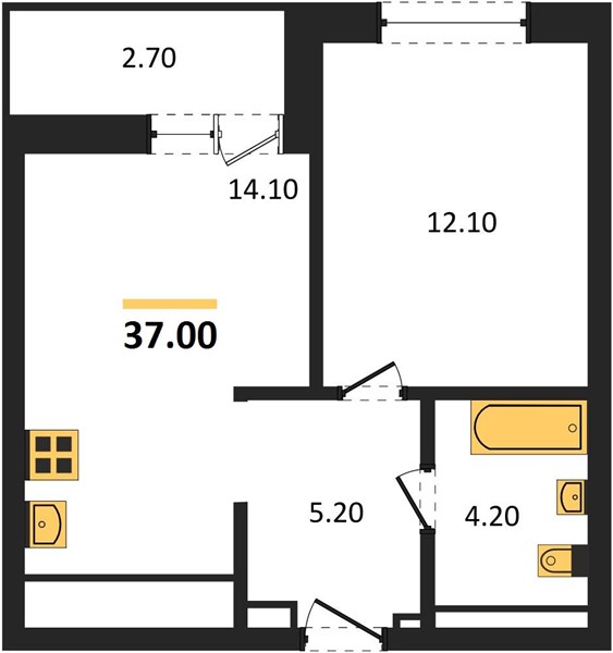 | Общая площадь: | 37.00 м2 |