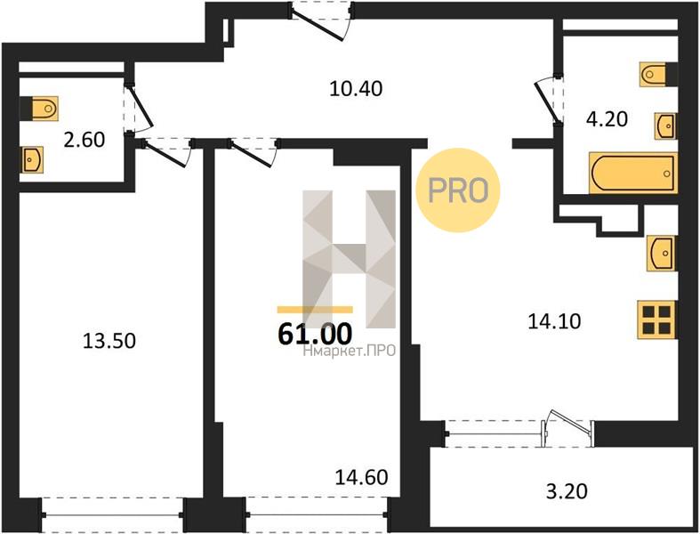 Квартира: 2 к 61,00 кв.м., 19 этаж в комплексе Estelle, 1 очередь, корп.1, сдача: 4кв. , этажей: 26, адрес Екатеринбург г., Пехотинцев ул., д. 2а-1, Застройщик: СЗ ИНВЕСТСТРОЙ.