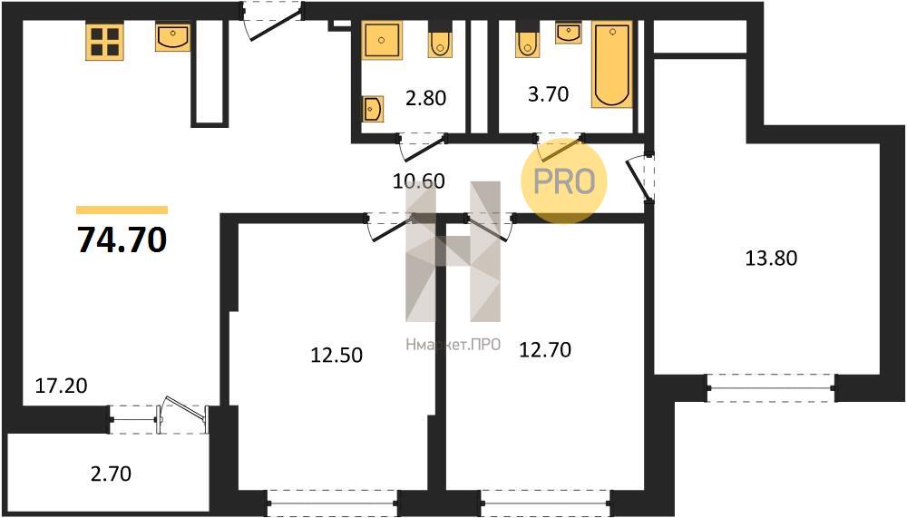 | Общая площадь: | 74.70 м2 |