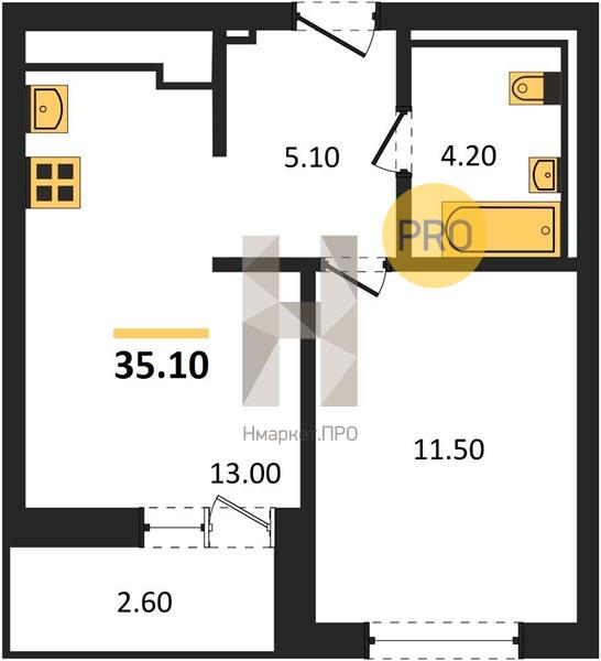 | Общая площадь: | 35.10 м2 |