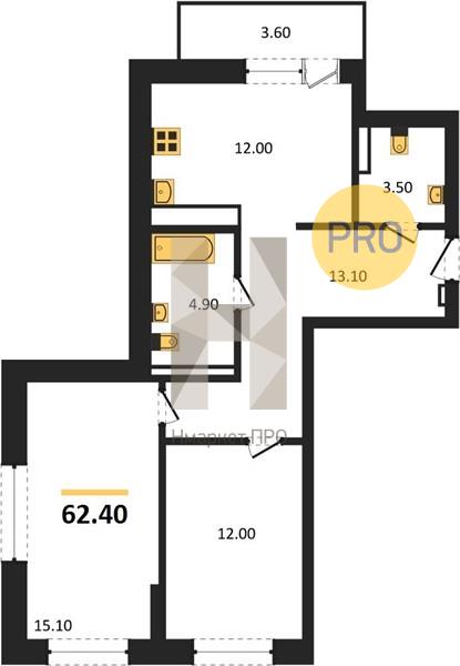 Квартира: 2 к 62,40 кв.м., 21 этаж в комплексе Estelle, 1 очередь, корп.1, сдача: 4кв. , этажей: 26, адрес Екатеринбург г., Пехотинцев ул., д. 2а-1, Застройщик: СЗ ИНВЕСТСТРОЙ.
