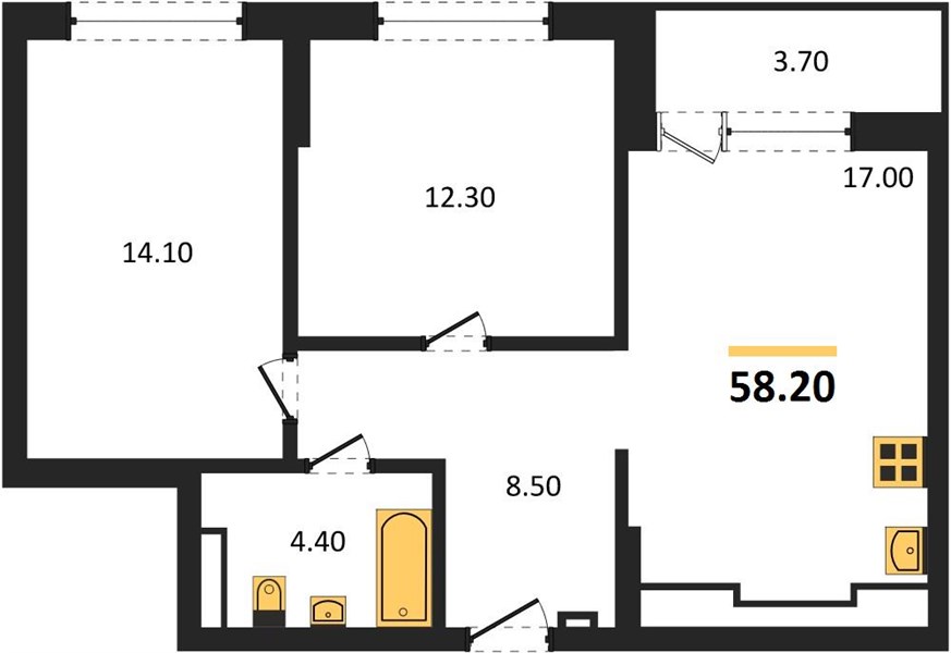 Квартира: 2 к 58,20 кв.м., 2 этаж в комплексе Estelle, 1 очередь, корп.1, сдача: 4кв. , этажей: 26, адрес Екатеринбург г., Пехотинцев ул., д. 2а-1, Застройщик: СЗ ИНВЕСТСТРОЙ.