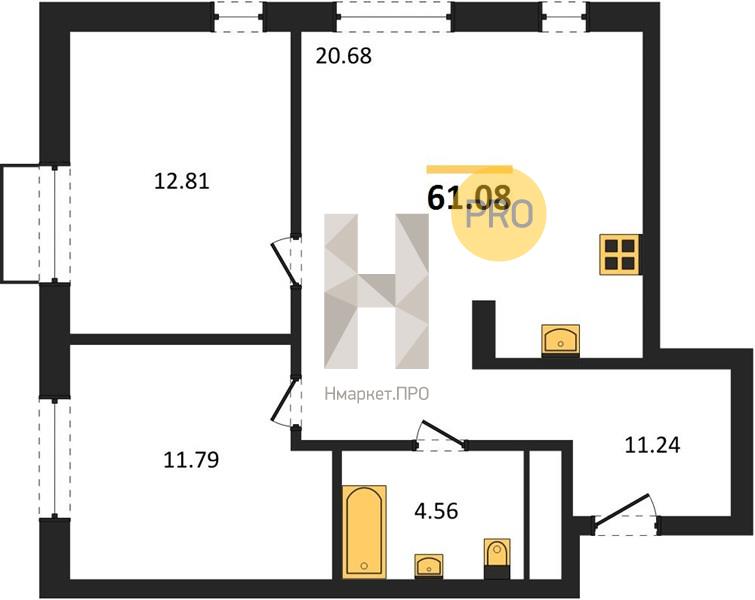 Квартира: 2 к 61,08 кв.м., 11 этаж в комплексе Rauta, 4 очередь, корп.5, сдача: 4кв. , этажей: 25, адрес Екатеринбург г., Пехотинцев ул., д. 2а, Застройщик: ГК ЭТАЛОН.