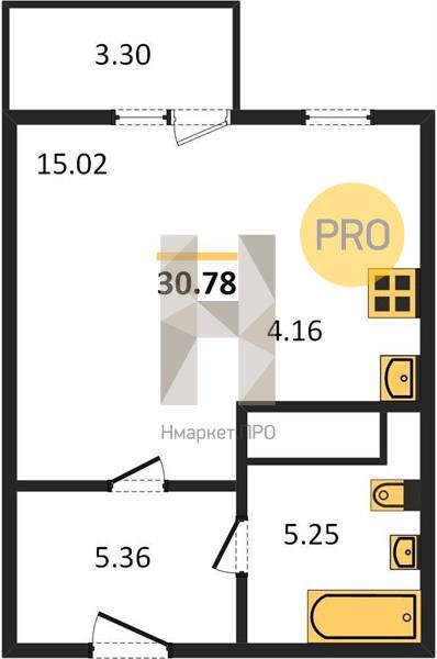 Общая площадь: 30.30 м2