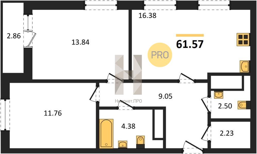 | Площадь кухни: | 16.38 м2 |