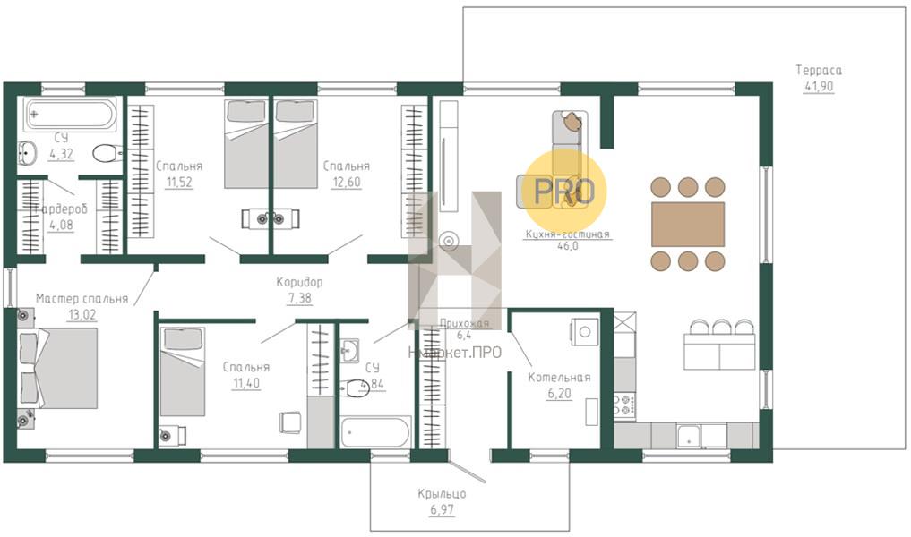 | Площадь кухни: | 46.00 м2 |