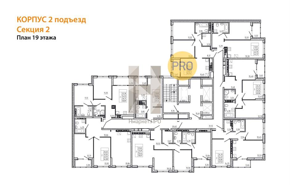 Квартира: 2 к 76,44 кв.м., 19 этаж в комплексе Небосклоны, 2 очередь, корп.2 подъезд, сдача: 4кв. , этажей: 21, адрес Екатеринбург г., Походная ул., , Застройщик: Унистрой.