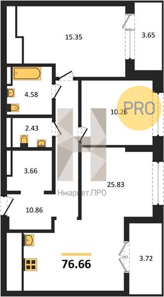 | Общая площадь: | 76.66 м2 |