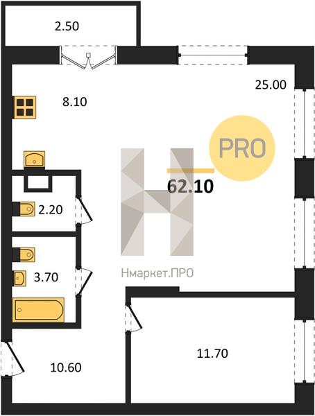 | Общая площадь: | 62.10 м2 |