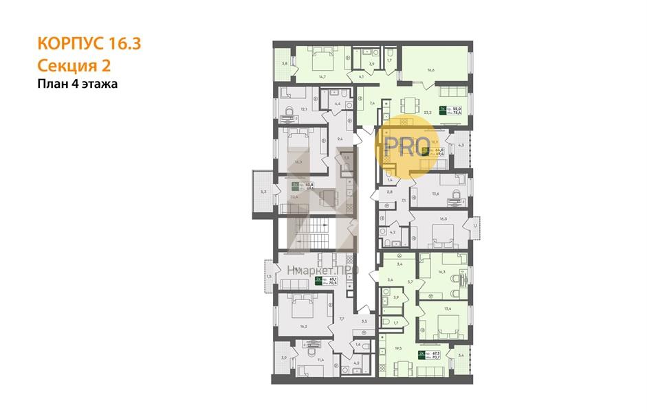 Квартира: 2 к 65,10 кв.м., 4 этаж в комплексе Совушки, 4 очередь, корп.16.3, сдача: 4кв. , этажей: 4, адрес Екатеринбург г., Праздничная ул., д. 22/3, Застройщик: Партнер-Строй.