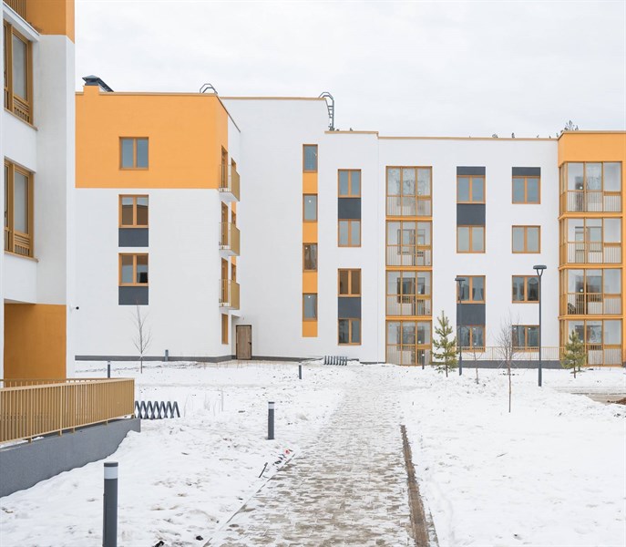 Малоэтажные дома квартирного типа не достигают в высоту более 4 этажей - они соразмерны деревьям и максимально открывают небесный простор и живописные зеленые панорамы. В каждой квартире установлены окна увеличенного размера, на первых и последних этажах расположены террасы. Тихие закрытые дворы и видеонаблюдение обеспечивают максимальную безопасность и исключают попадание на территорию посторонних людей. В каждой парадной на первом этаже продуманы колясочные помещения с ключом доступа: ваши коляски, велосипеды и самокаты останутся в безопасности.