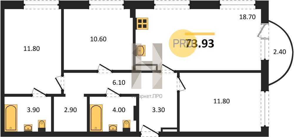 | Общая площадь: | 73.93 м2 |