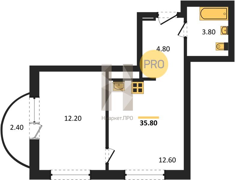 Квартира: 1 к 34,07 кв.м., 5 этаж в комплексе Движение, 1 очередь, корп.1, сдача: 4кв. , этажей: 12, адрес Екатеринбург г., Проходной пер., д. 1в/2, Застройщик: Астон Групп.