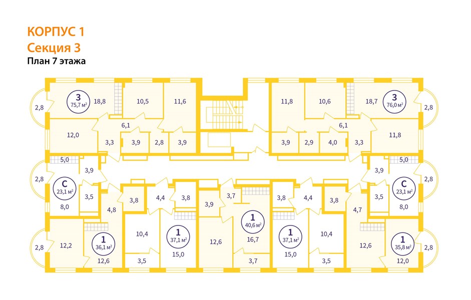 Большая вариативность планировок, много видовых квартир, предусмотрены окна на две стороны даже в однокомнатных квартирах, а для любителей солнечного света есть планировки с окнами в ванных комнатах. Постепенный набор высоты домов от улицы Пехотинцев вглубь квартала позволит наполнить солнечным светом каждую квартиру. Первые этажи домов соединяет стилобат — большая галерея товаров и услуг для жителей.