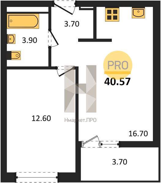 Квартира: 1 к 40,57 кв.м., 7 этаж в комплексе Движение, 1 очередь, корп.1, сдача: 4кв. , этажей: 12, адрес Екатеринбург г., Проходной пер., д. 1в/2, Застройщик: Астон Групп.