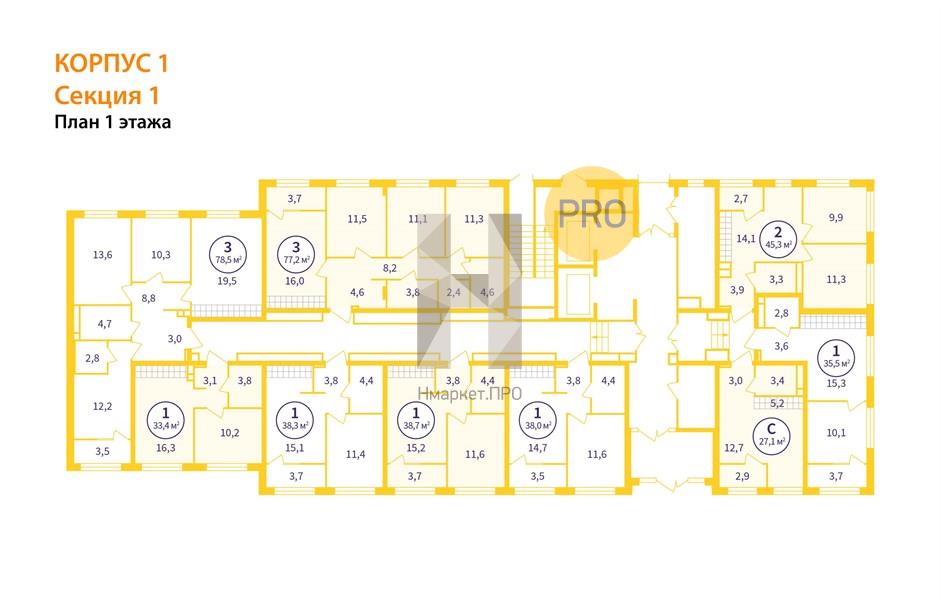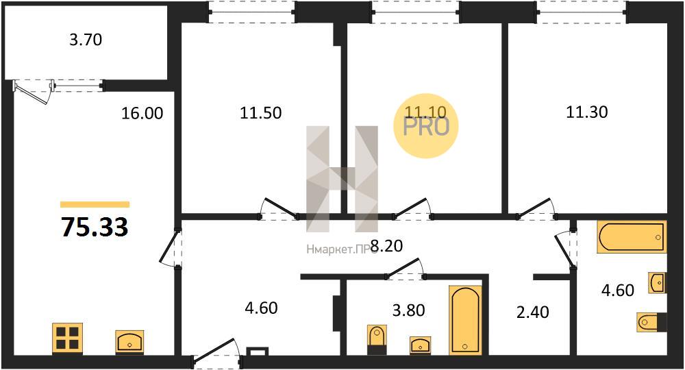 Квартира: 3 к 75,33 кв.м., 1 этаж в комплексе Движение, 1 очередь, корп.1, сдача: 4кв. , этажей: 12, адрес Екатеринбург г., Проходной пер., д. 1в/2, Застройщик: Астон Групп.