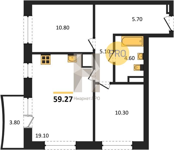 Квартира: 2 к 59,27 кв.м., 6 этаж в комплексе Движение, 1 очередь, корп.2, сдача: 4кв. , этажей: 9, адрес Екатеринбург г., Проходной пер., д. 1в, Застройщик: Астон Групп.