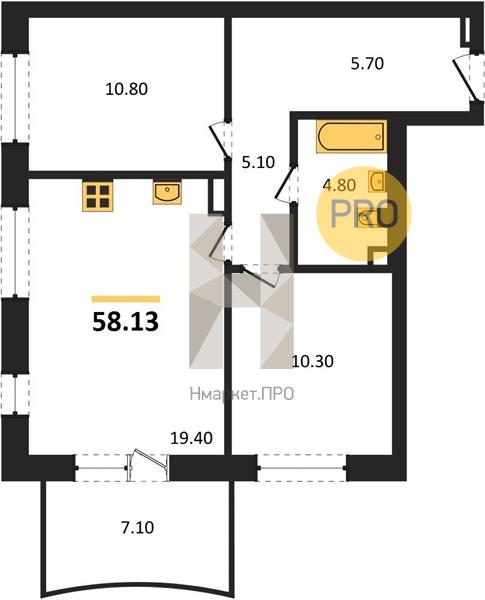 Квартира: 2 к 58,13 кв.м., 1 этаж в комплексе Движение, 1 очередь, корп.2, сдача: 4кв. , этажей: 9, адрес Екатеринбург г., Проходной пер., д. 1в, Застройщик: Астон Групп.