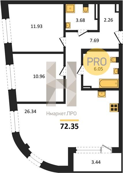 | Общая площадь: | 72.35 м2 |