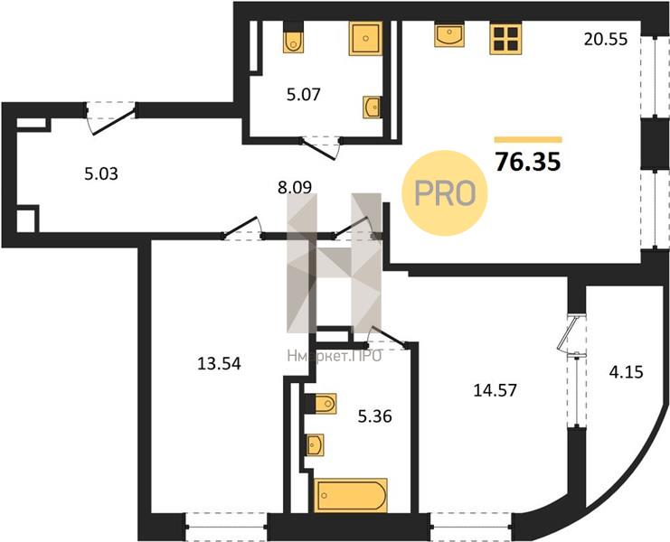 | Общая площадь: | 76.35 м2 |