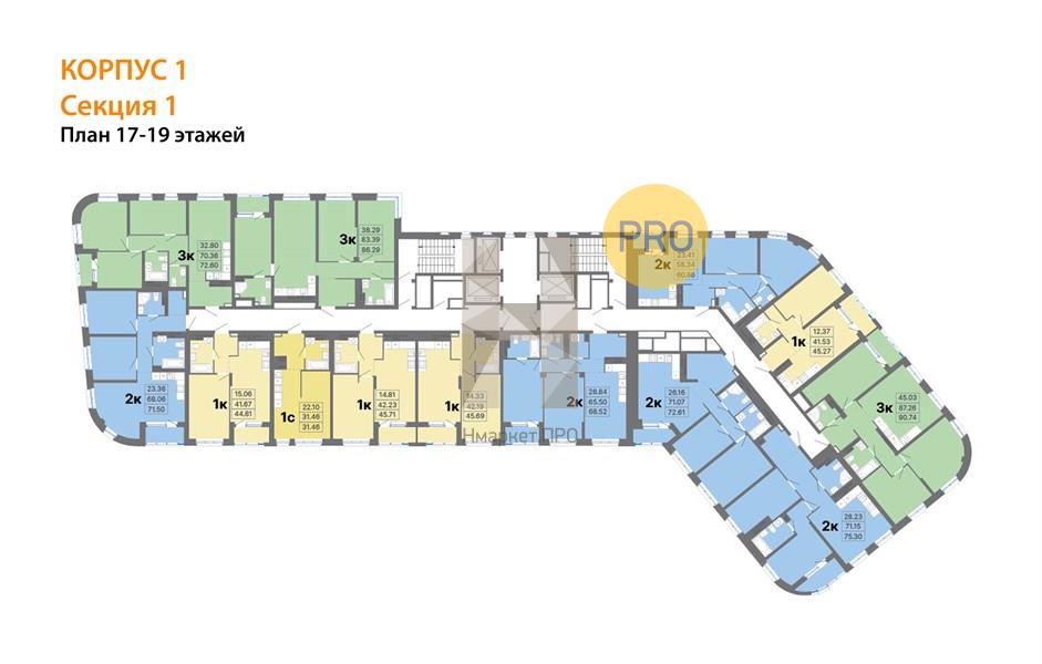 Квартира: 1 к 44,81 кв.м., 17 этаж в комплексе Авангард 3.0, 1 очередь, корп.1, сдача: 4кв. , этажей: 26, адрес Екатеринбург г., Раевского ул., , Застройщик: АтомСтройКомплекс.