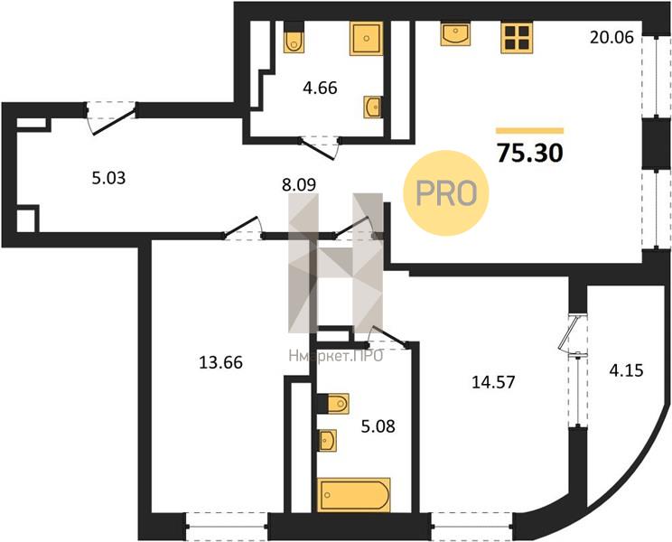 Квартира: 2 к 75,30 кв.м., 20 этаж в комплексе Авангард 3.0, 1 очередь, корп.1, сдача: 4кв. , этажей: 26, адрес Екатеринбург г., Раевского ул., , Застройщик: АтомСтройКомплекс.