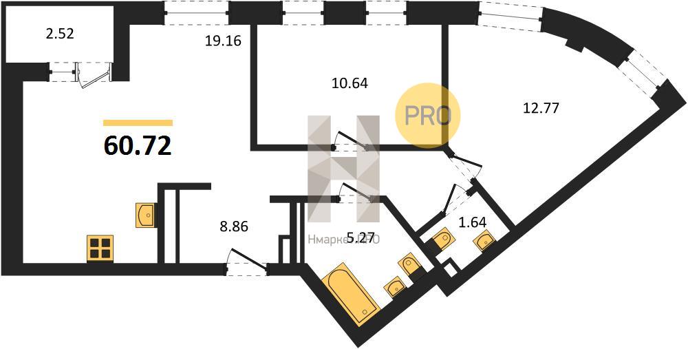 | Площадь кухни: | 19.16 м2 |