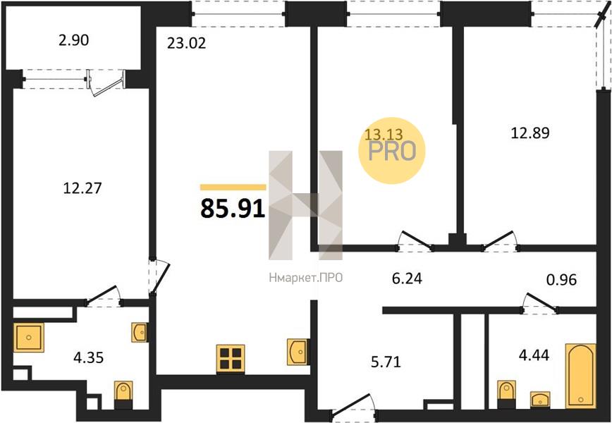 | Общая площадь: | 85.91 м2 |