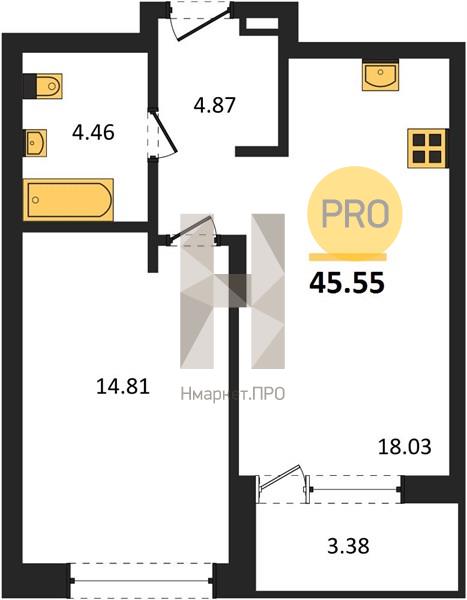 | Общая площадь: | 45.55 м2 |