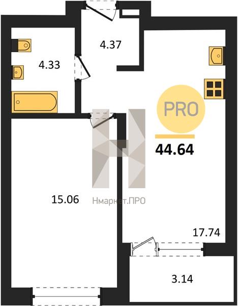 | Общая площадь: | 44.64 м2 |